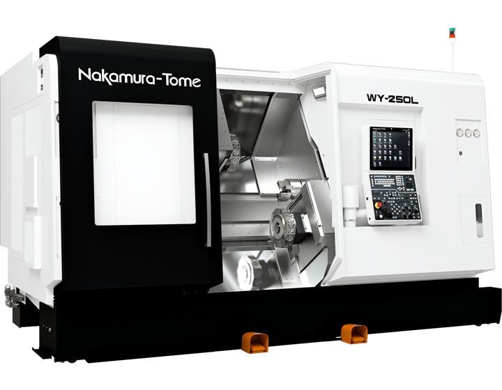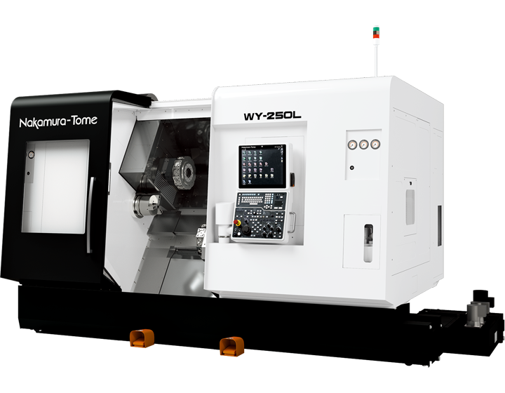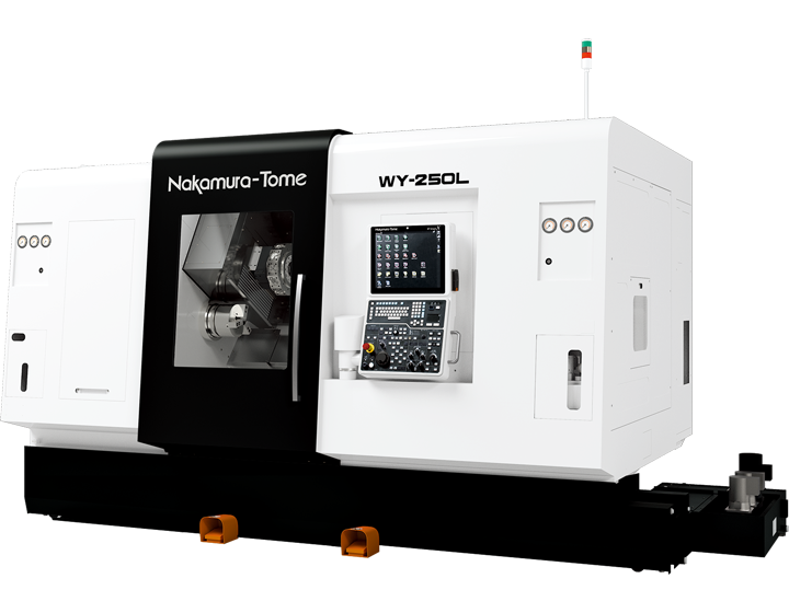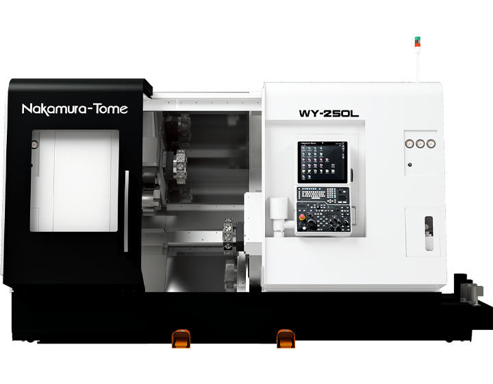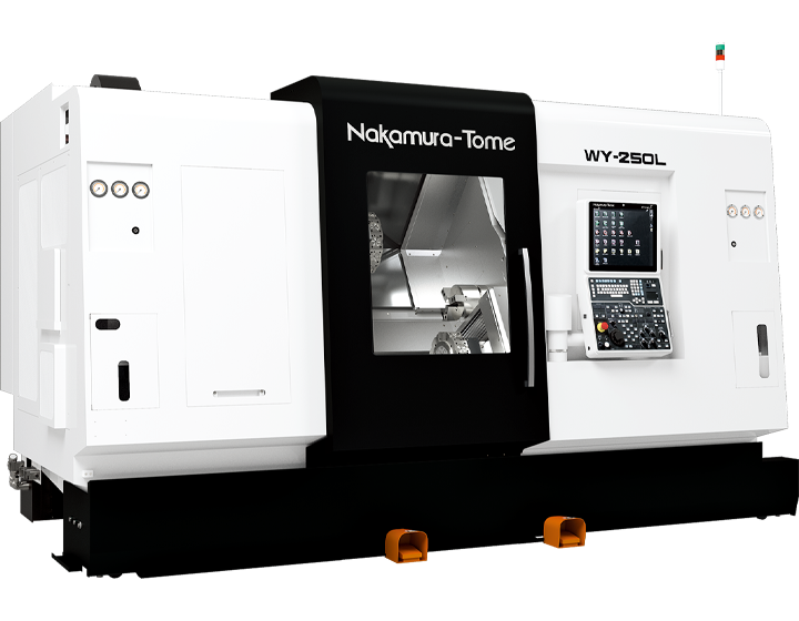 Nakamura-Tome WY-250L, karşılıklı çift iş mili ve çift taret konfigürasyonu ile yüksek verimlilik sunan çok eksenli bir işleme merkezidir. Tüm taretlerde standart Y-ekseni, geniş işleme alanı ve 1.200 mm spindle mesafesi sayesinde uzun parçaları bile tek bağlamada hassas şekilde işleyebilir. 48 takıma kadar kapasitesi, güçlü frezeleme motorları ve senkronize taret yapısı ile üretim çevrim sürelerini ciddi ölçüde azaltır.